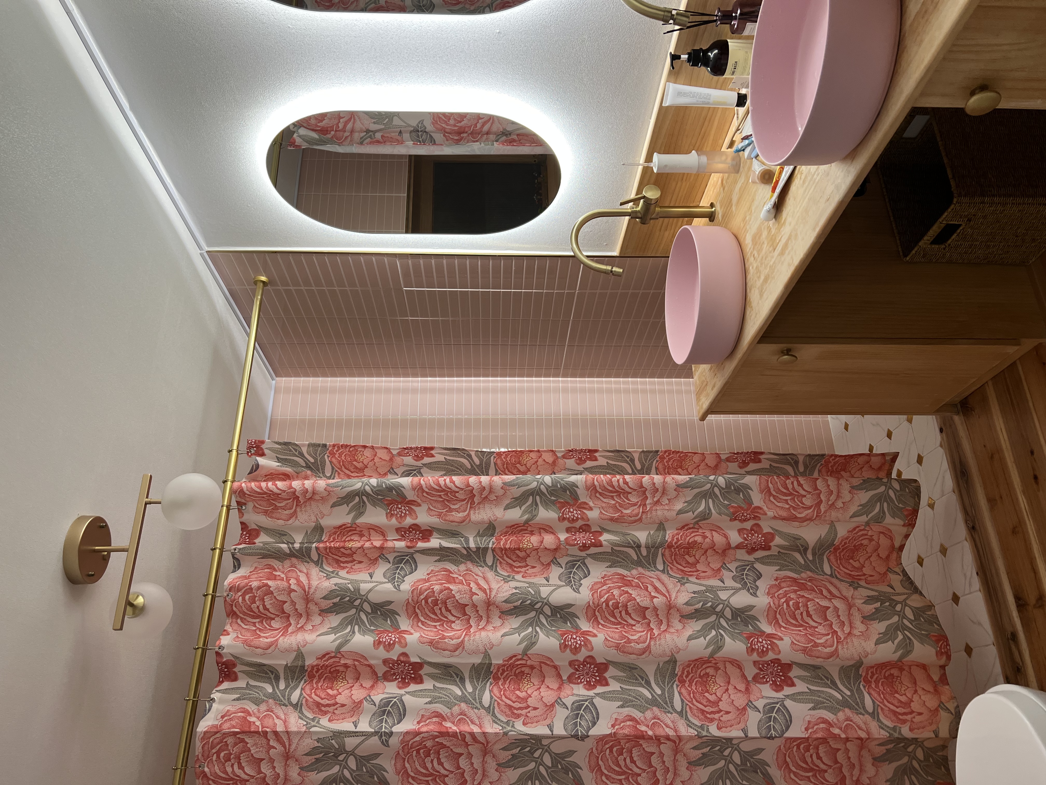 욕실에서도 핑크핑크한 분위기로 메이크업샷 연출을 해보세요 :)