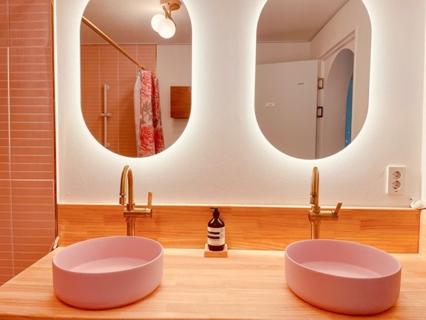 두개의 세면대가 있어 고데기와 핀, 메이크업을 편하게 할수 있어요.