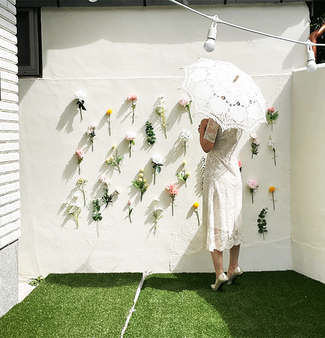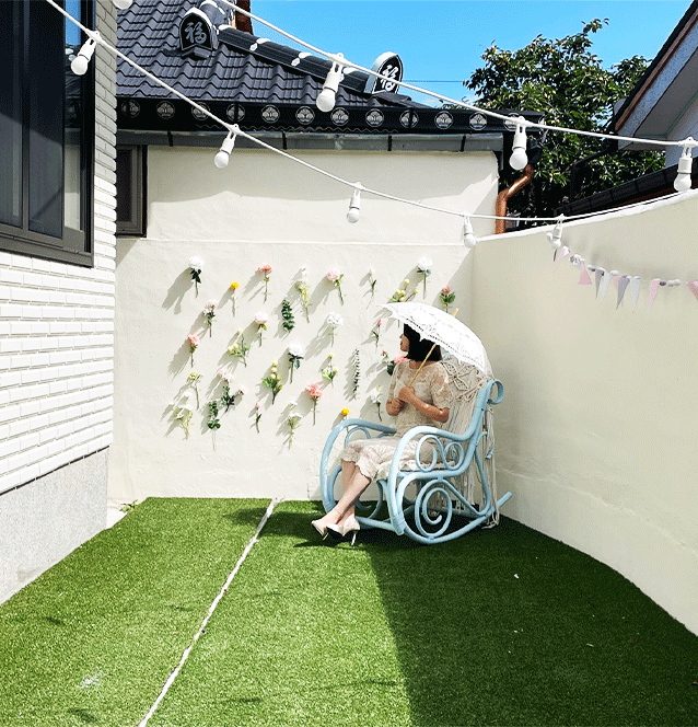 - 꽃 소품으로 장식된 잔디마당