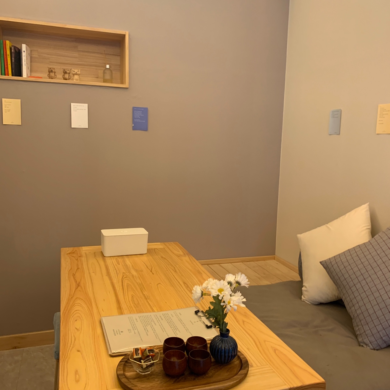 처음에 고객센터와 연락이 잘 안됐었는데 나중에 연락이 닿아서 다행이었구요 굳이 뽑자면 숙소의 단점은 환기가 잘 안된다는 점이었어요! 현관문이 다 열리긴한데 방충망이 없어서 벌레들어오는 것 때문에 열어놓질 못했어요 부엌은 작은 창이랑 환기구가 있어서 그나마 괜찮았네요! 여름엔 에어컨 틀면 되겠지만 예쁜 계절에 시원한 바람을 집에서 느낄 수 없는건 좀 아쉬웠습니다. 아 그리고 빔프로젝트 사용설명서가 좀 더 실용성 있는 거면 좋겠어요! 블로그 글은 사용설명보단 제품소개에 더 가까워서 실 사용에 도움이 되진 않았어요ㅠ! 그치만 전체적인 분위기, 편백나무 향, 소품 넘 최고였어요 빔프로젝트, 욕실 천장의 제습기 등 세심하게 준비된 것들이 비싼 값어치를 톡톡히 한것같고 준비도 넘 잘해주셨구요 주변 인프라도 넘 좋아서 순천여행은 유유가 주변 골목길에서 다 하고갔어요 천변, 시장, 문화골목길~~ 등등 조금만 걸으면 볼거리 즐길거리 많아서 다들 예약 넘 잘했다고 좋아해줬구요 덕분에 편하고 행복한 여행 됐습니다👍