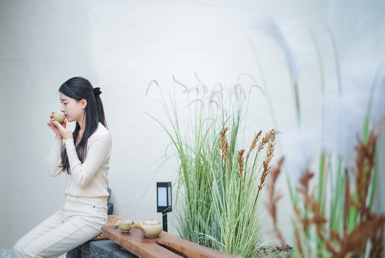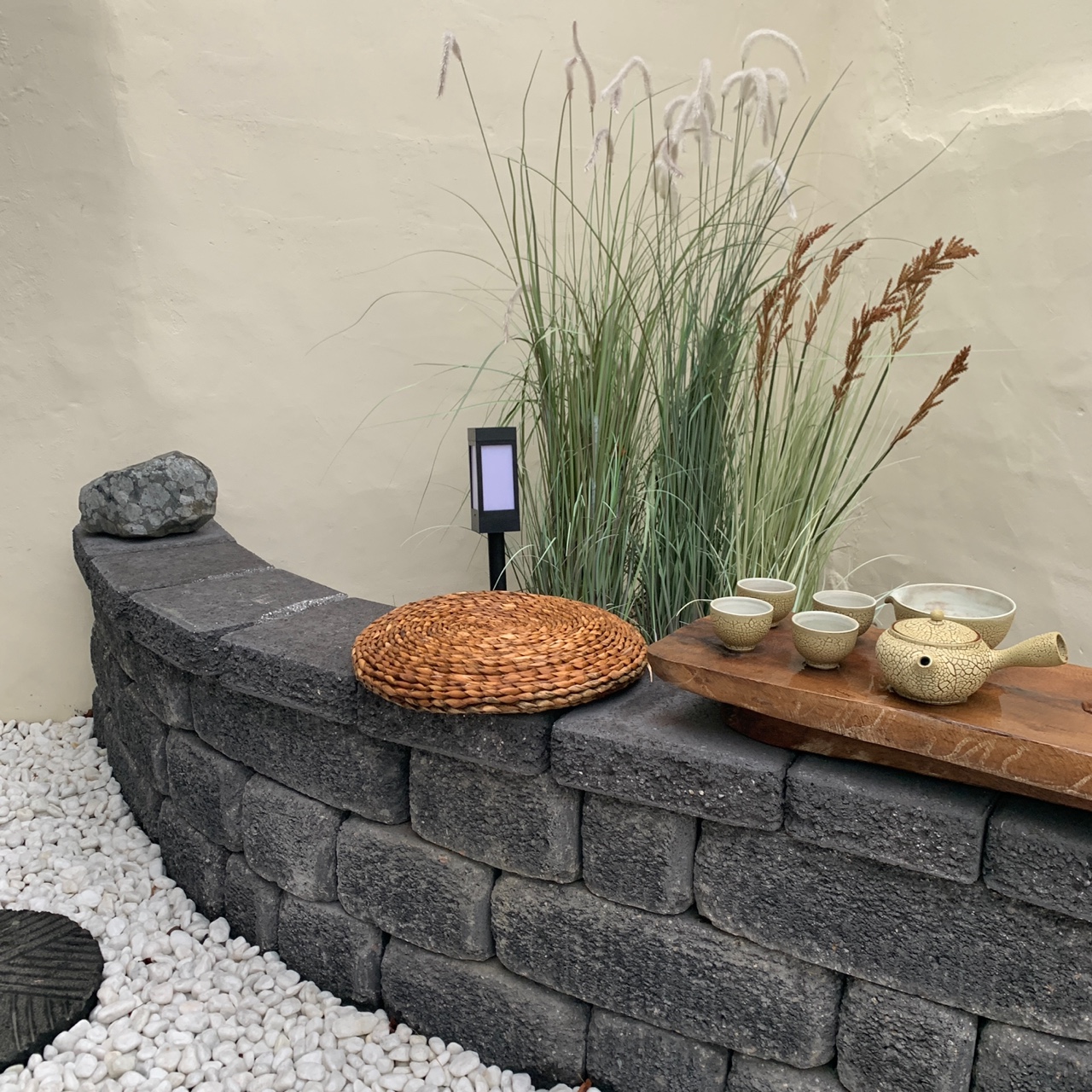 동그란 모양의 돌에 발을 하나하나 디디며 놀다가 정갈하게 놓인 작은 티 테이블 위 찻잔에 따뜻한 차를 우려내 따라 마시면 몸도 마음도 정갈해져요.