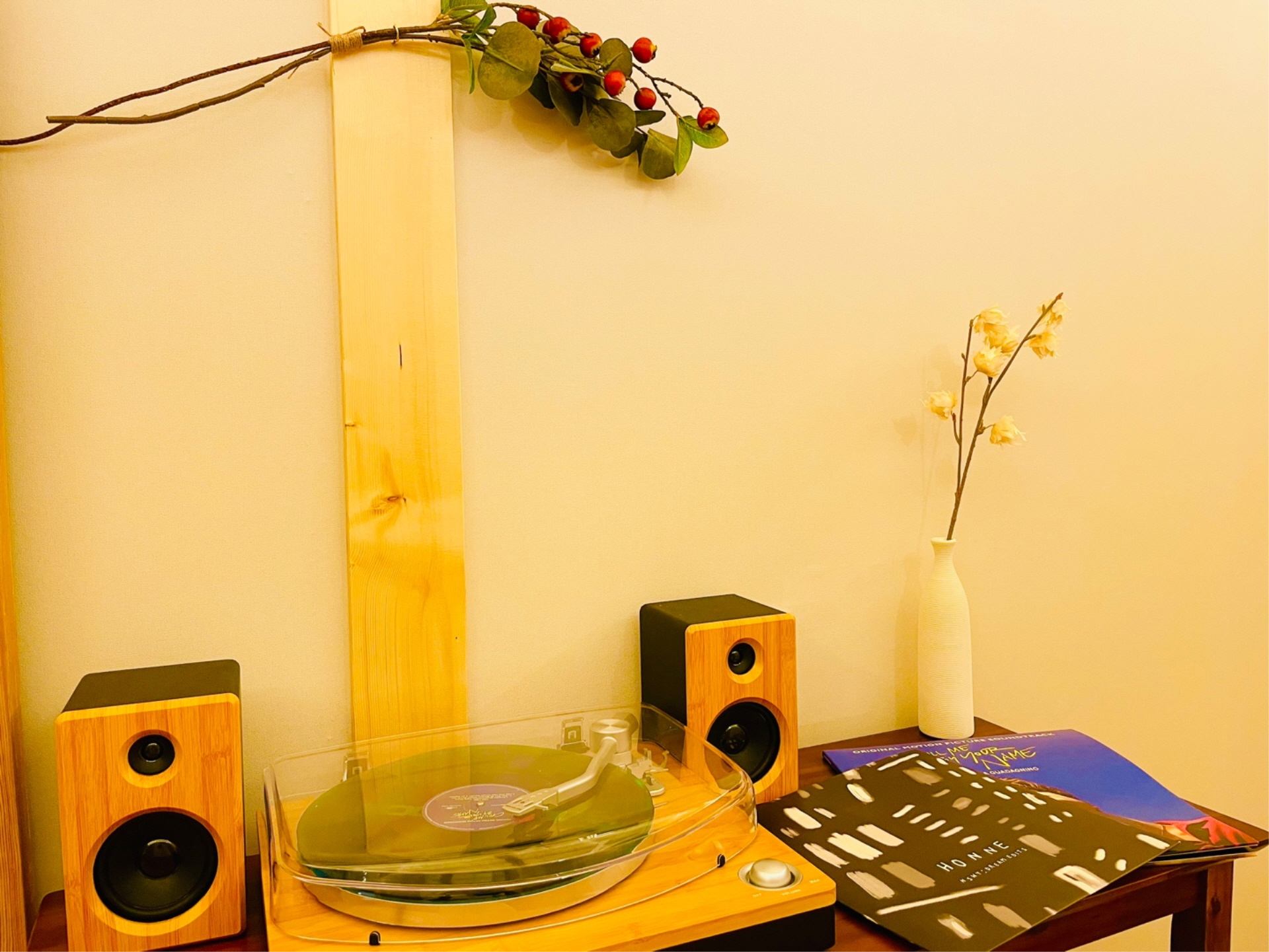 즐거운 대화로 가득 찰 거실 공간에는 USB까지 겸한 턴테이블이 있어서 LP 감성과 동시에 우리만의 감성을 담은 배경음악을 깔아볼 수도 있어요.