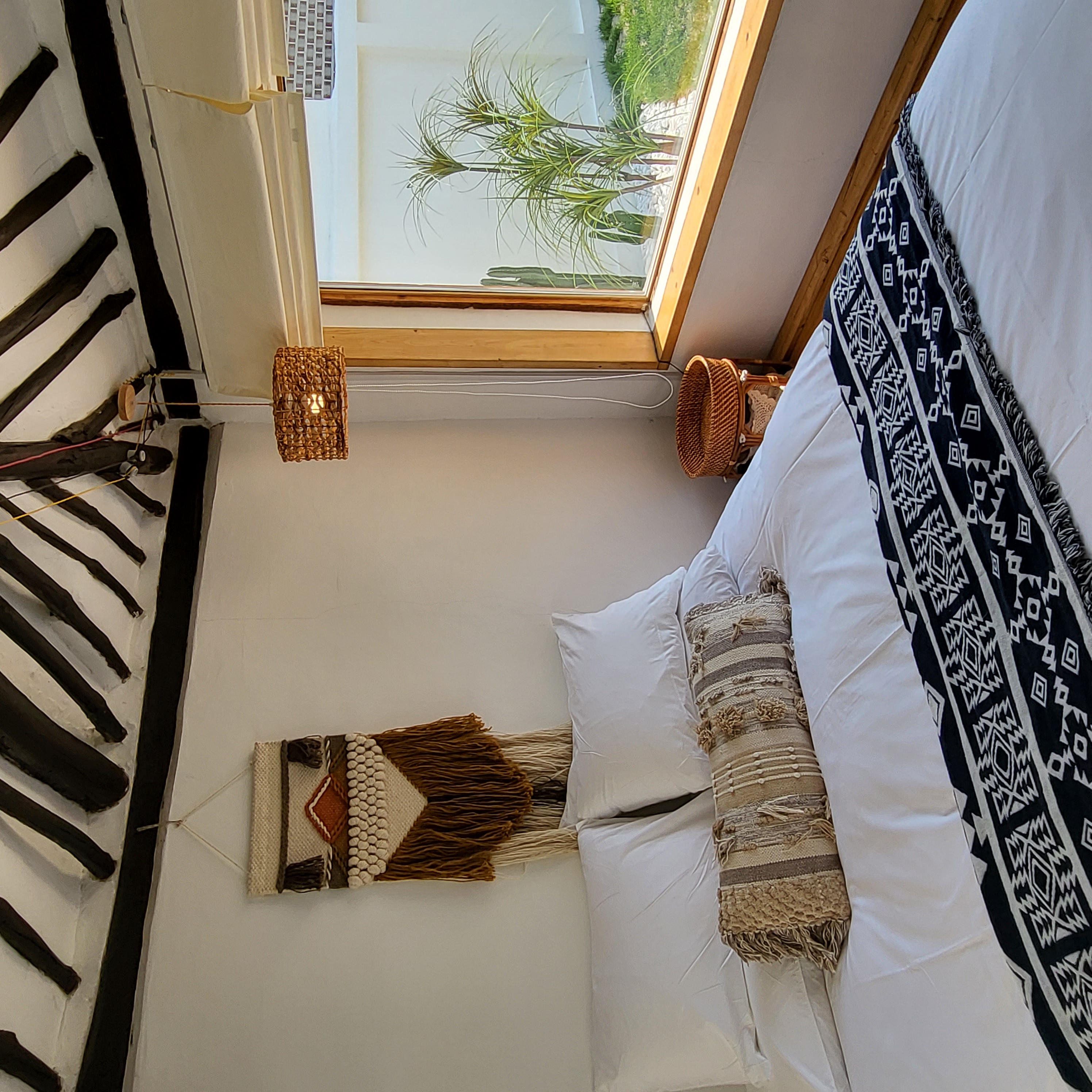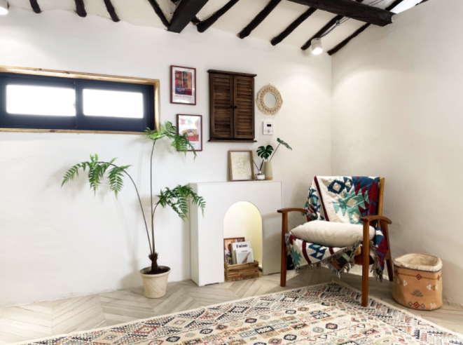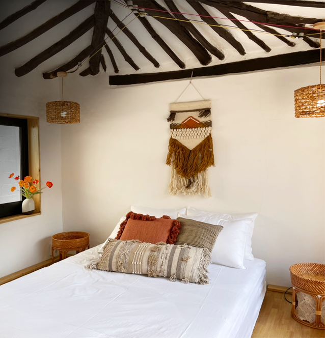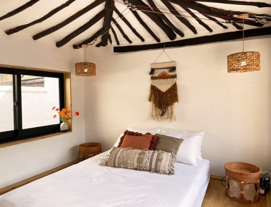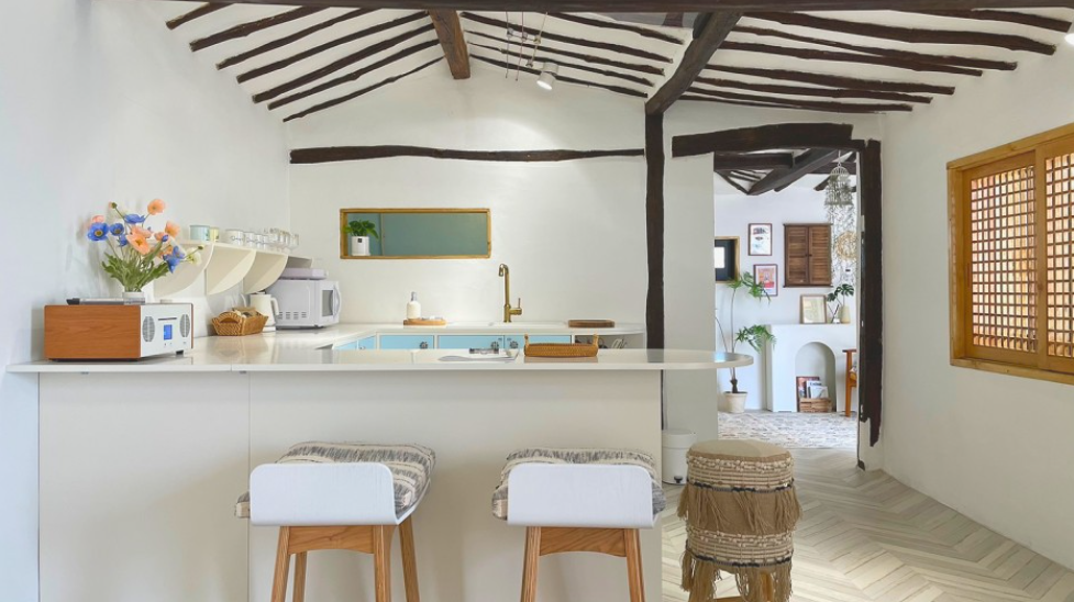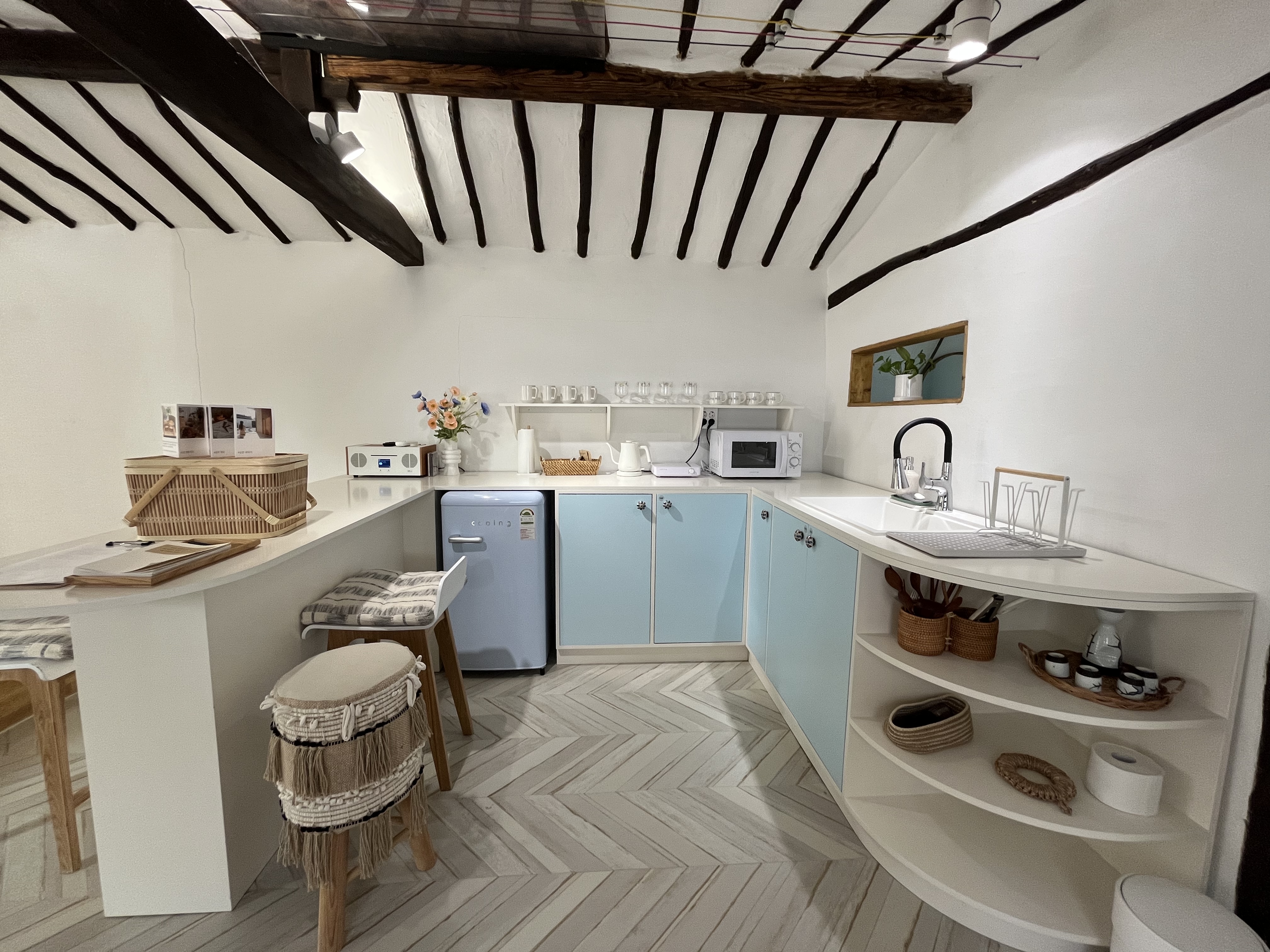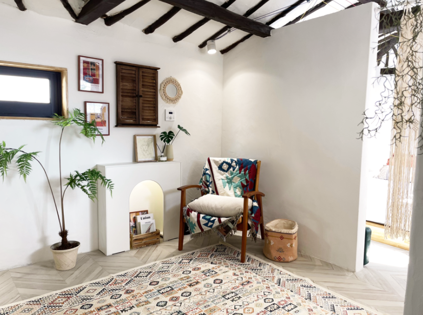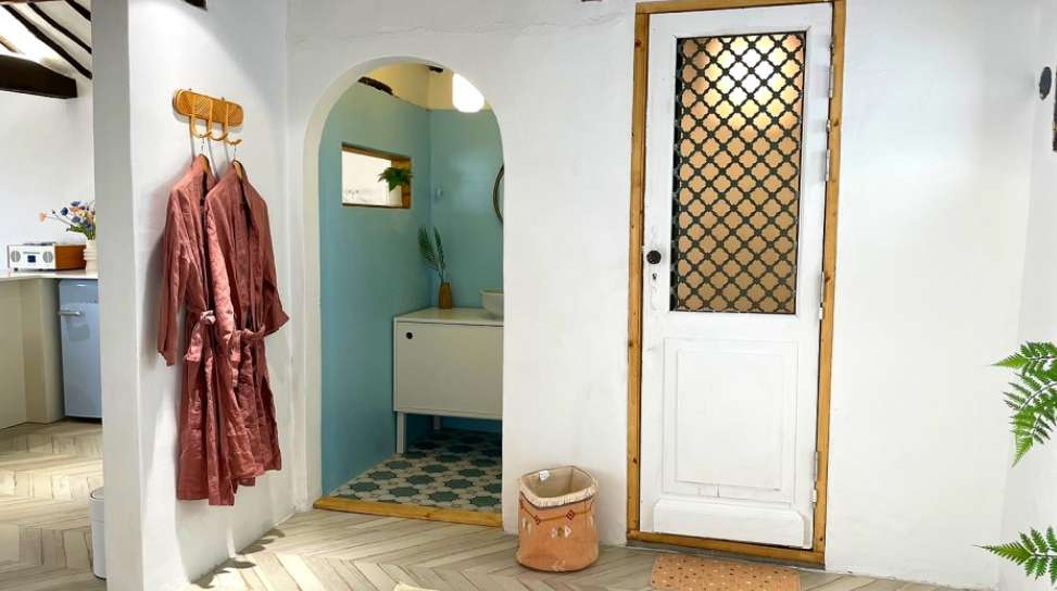 에스닉한 보헤미안 컨셉으로 스카이블루 컬러를 포인트로한 인테리어가 인상적인 숙소 입니다.