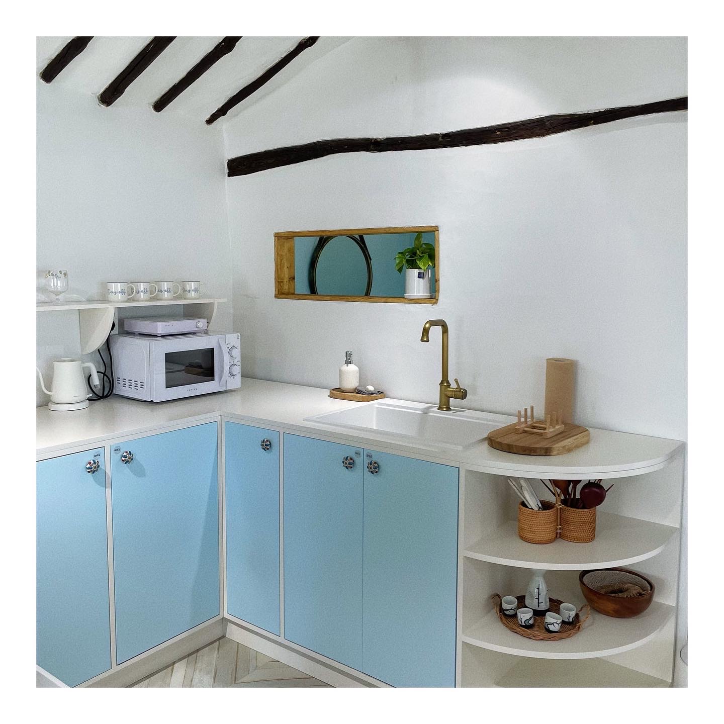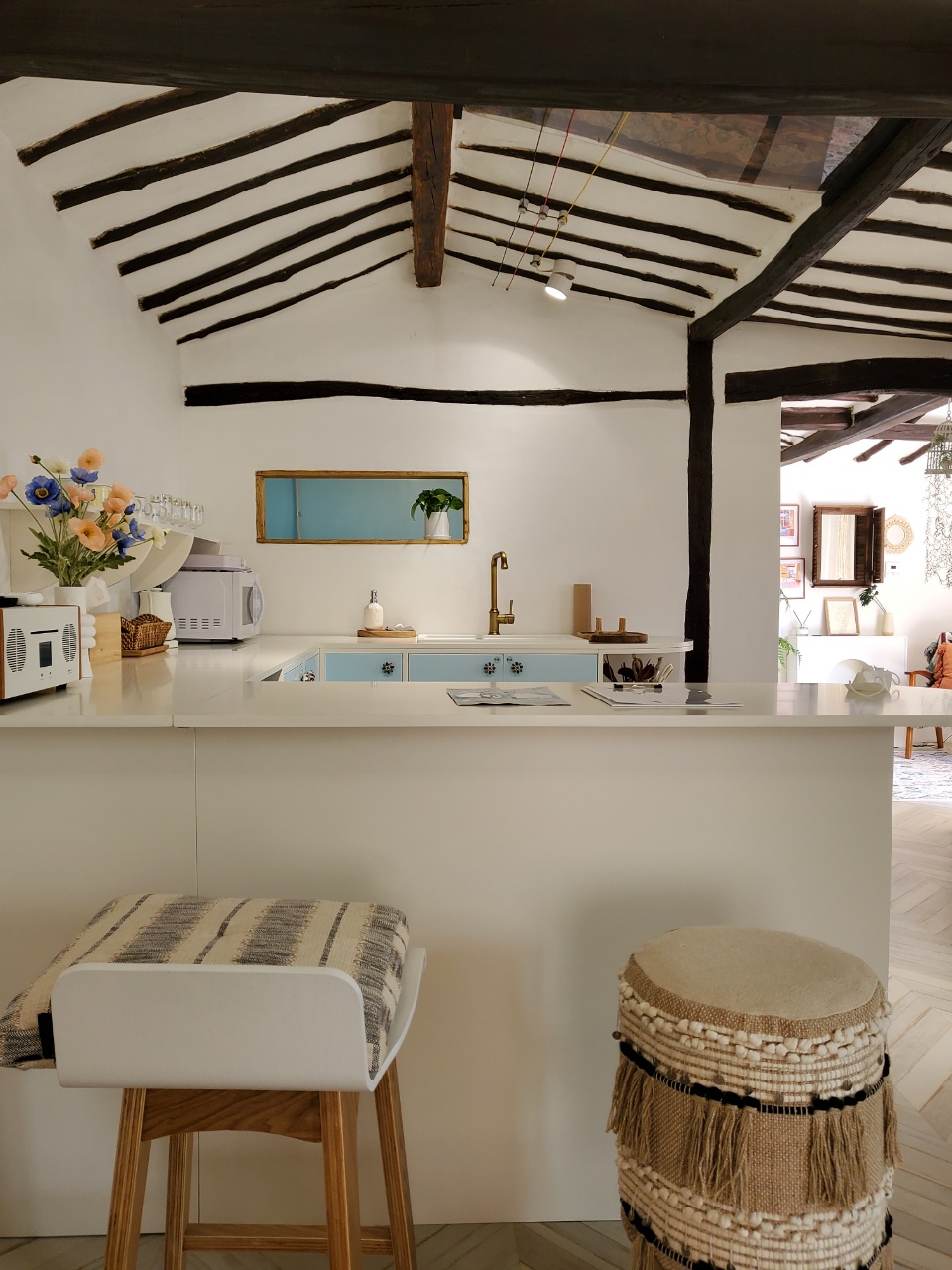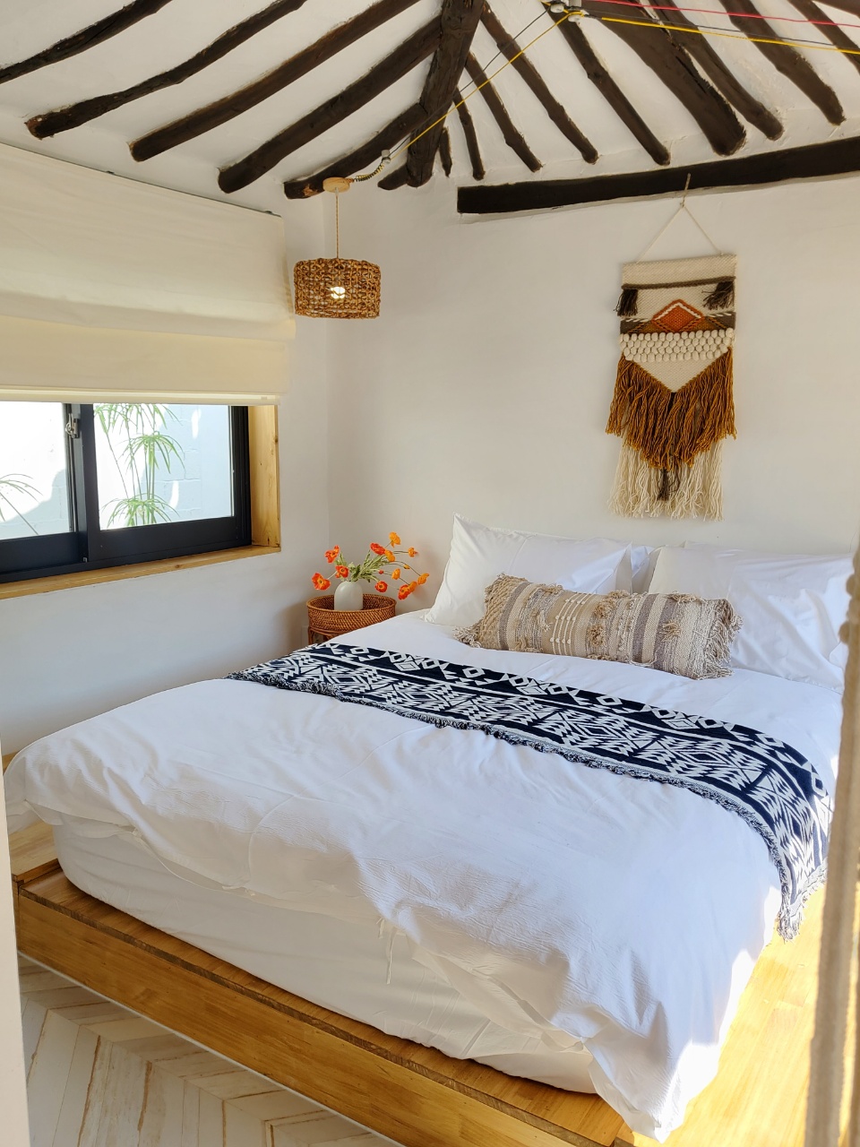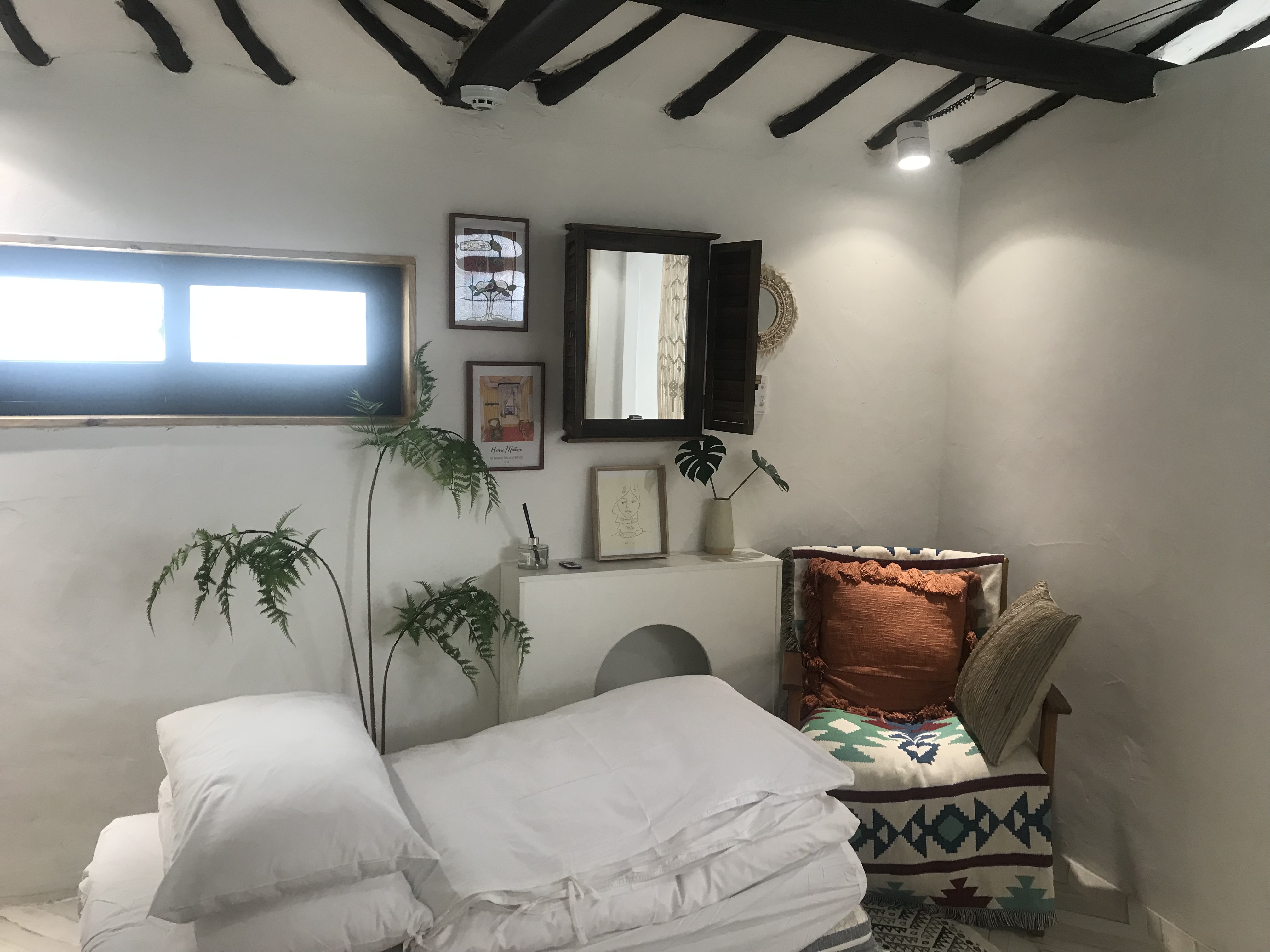 에스닉한 보헤미안 컨셉으로 스카이블루 컬러를 포인트로한 인테리어가 인상적인 숙소 입니다.